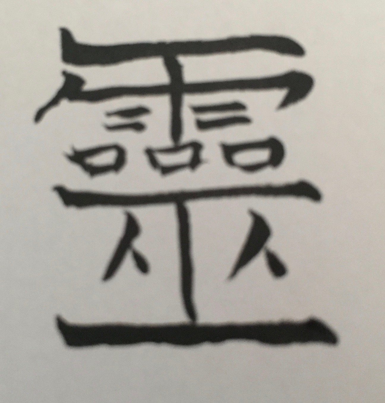 Le chaman peut invoquer ces esprits comme l’esprit de l’Eau pour faire pleuvoir, c’est ce que représente l’idéogramme chinois LING du pouvoir personnel, on l’on voit le caractère de la pluie (Yue) en haut au dessus de 3 bouches (Kou) avec en dessous le chaman (Wu) qui fait des incantations pour obtenir la bénédiction de la pluie.